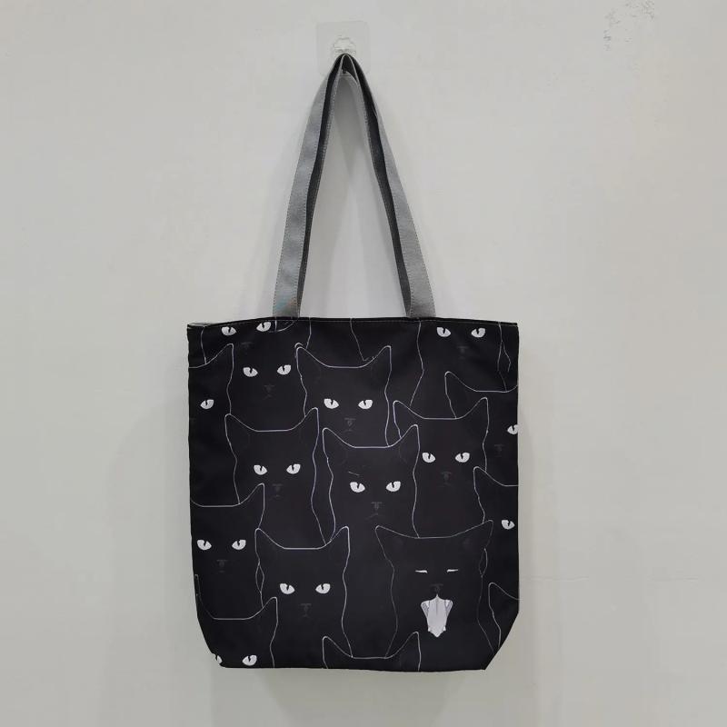 This cute shoulder bag features a whimsical cat print, perfect for adding a fun touch to your outfit. It is reusable and ideal for shopping or carrying office essentials.