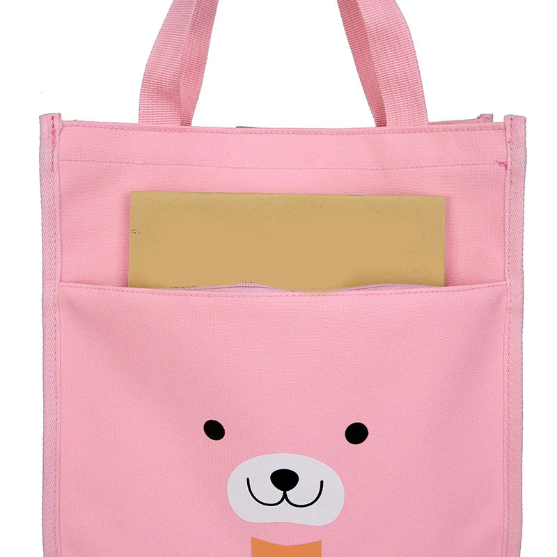 Cartoon Bear Girls Backpack Set Canvas School Bag Lightweight Travel