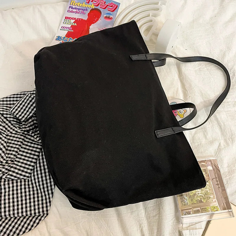 Adorable and practical, this shoulder tote bag is perfect for daily use, shopping, or carrying books. Made of durable canvas material with a cute bear and rabbit cartoon design.