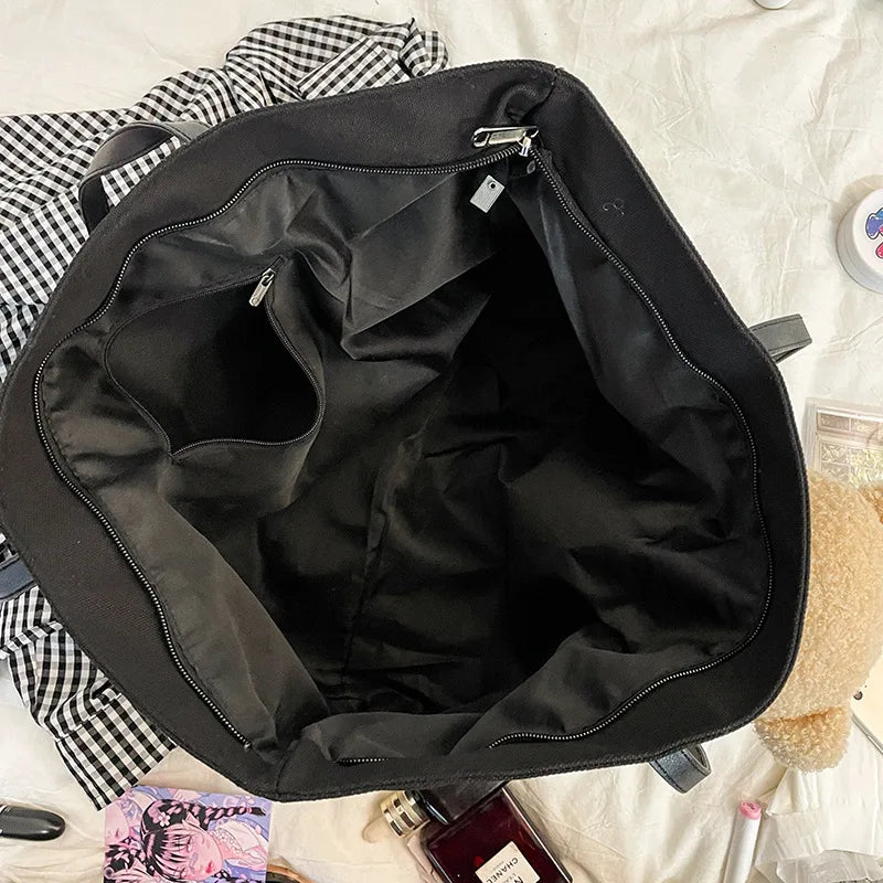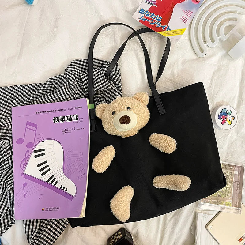 Cartoon Bear Rabbit Canvas Women Shoulder Tote Bag