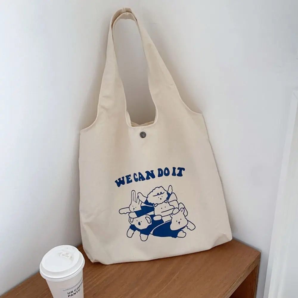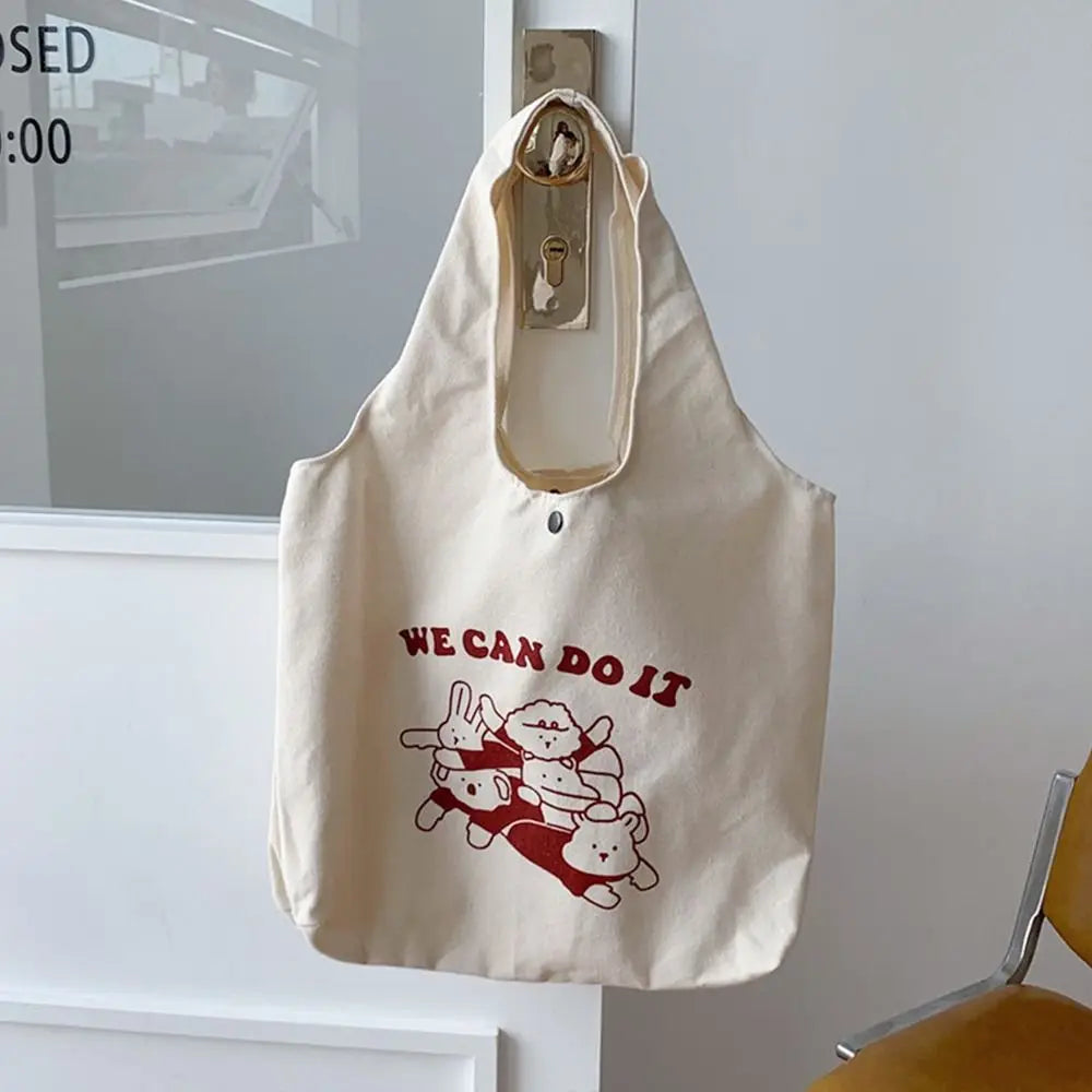 This cute canvas shoulder bag is perfect for daily shopping or carrying books. Made of high-quality cotton cloth, it's a stylish and practical choice for students.