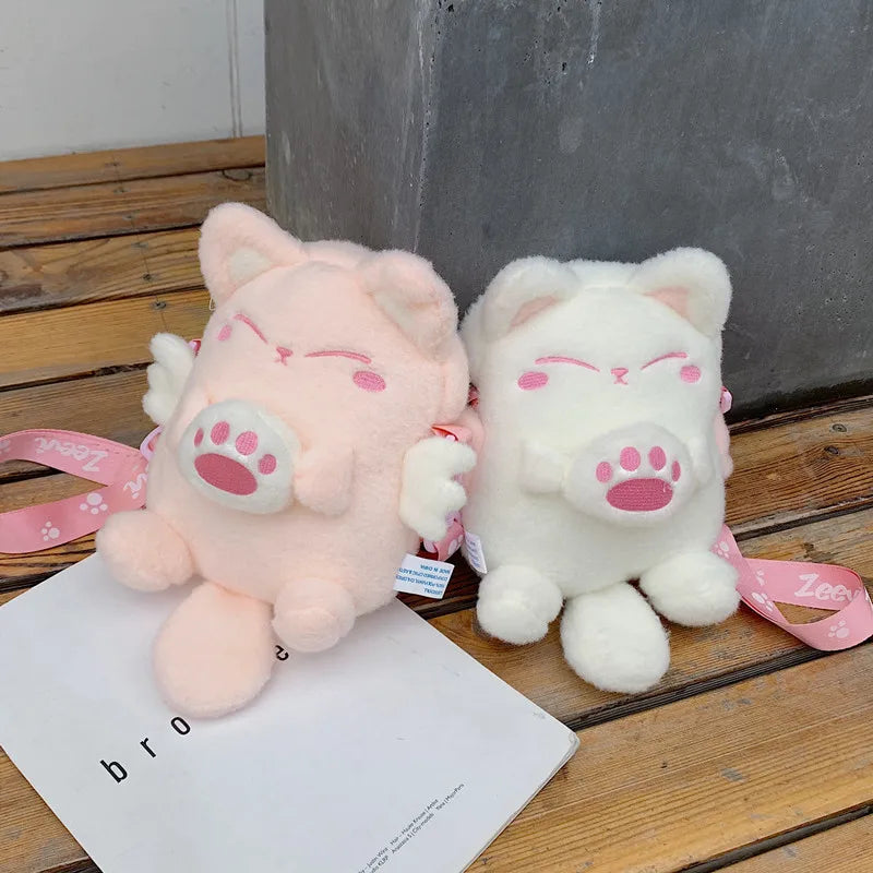 Adorable Cartoon Cat Plush Shoulder Bag perfect for women and girls, use as a messenger bag or mobile phone bag