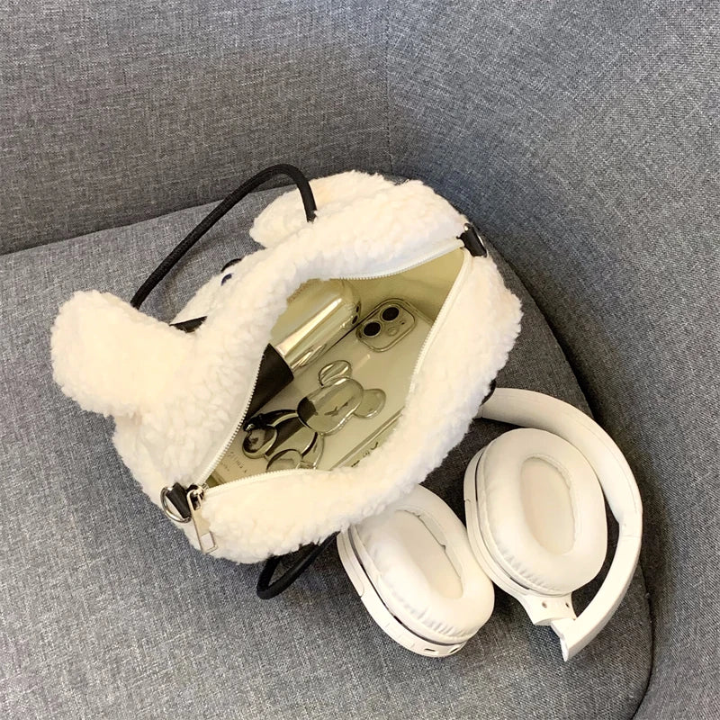 Cartoon Dog Women's Shoulder Bag Faux Lamb Wool Student Girls Clutch Purse