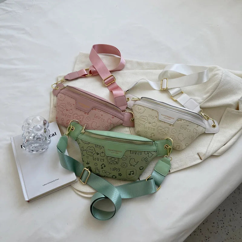 Cartoon Pictures PU Leather Fanny Pack Waist Bag Women