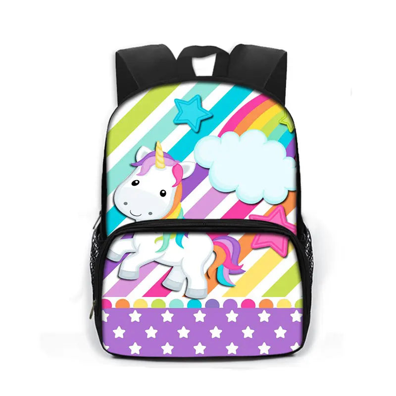 This adorable cartoon unicorn print school bag is perfect for boys and girls. Ideal for carrying books and other essentials. Made with high-quality materials for durability.