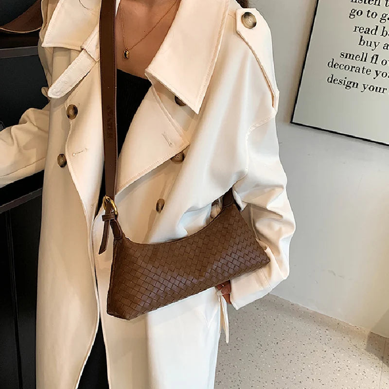 Stay stylish with this women's woven handbag perfect for casual outings, travel, and shopping. This armpit bag is a must-have accessory.
