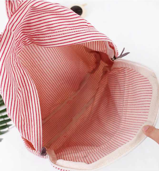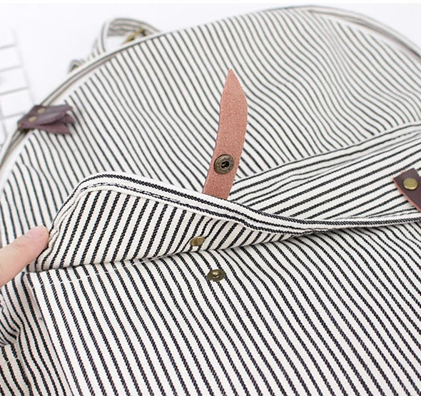 Stay stylish with this cotton leisure fabric backpack perfect for everyday use. Features striped design and ample space for all your essentials.