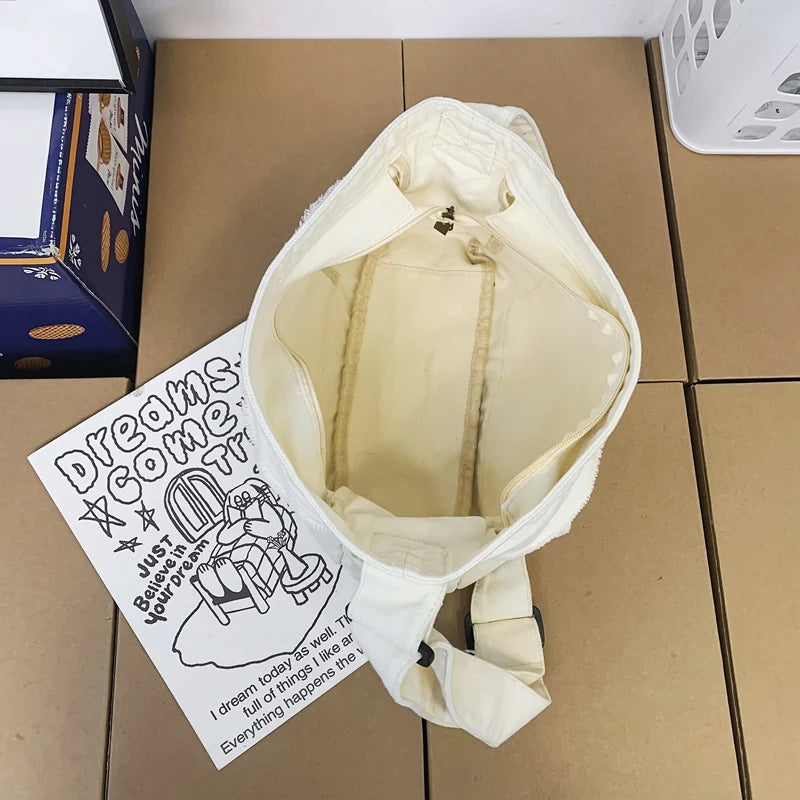 This summer shoulder bag is perfect for women, students, and shopping. It features a casual canvas design.