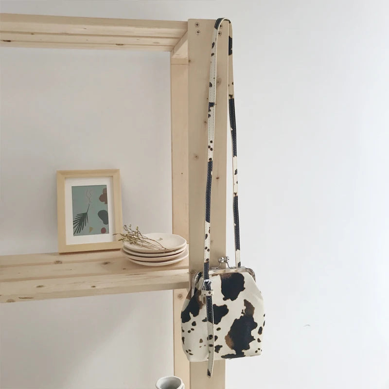 Stay stylish with this casual cow pattern handbag that features a convenient clip design. Perfect for women who love functional yet trendy accessories.