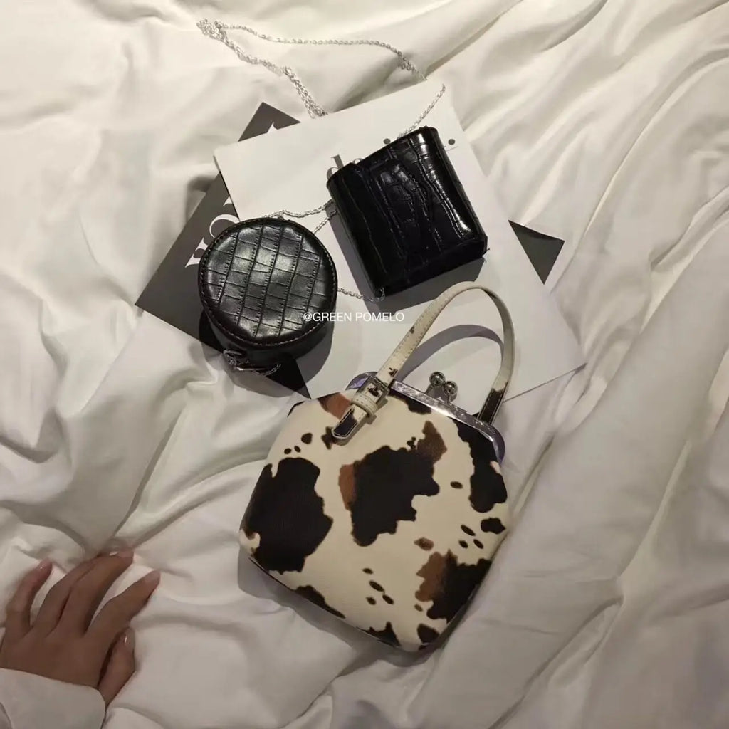 Casual Cow Pattern Clip Women Handbags Crossbody Bags Shoulder Messenger Purse
