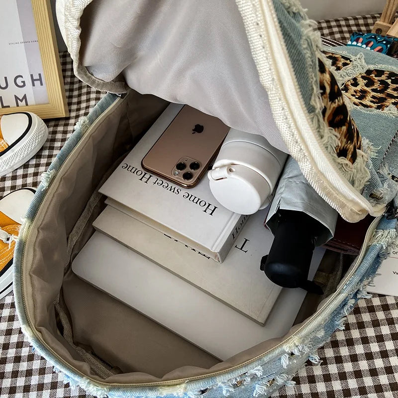Casual Denim Women Backpack Large Capacity School Bags