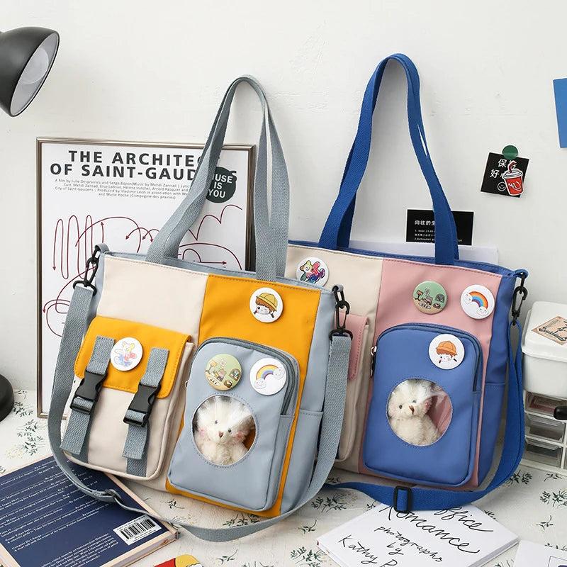 Stay stylish and organized with this clear pocket casual handbag. Ideal for students and perfect for campus style.