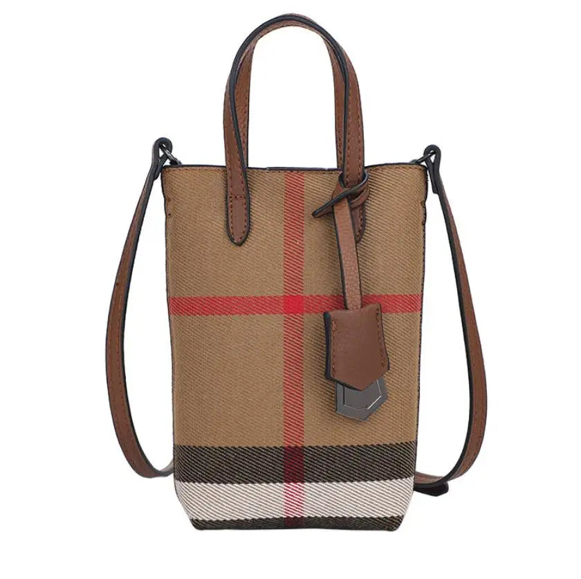 Casual Leather Phone Bag Women Small Shoulder Crossbody Plaid Messenger Bag