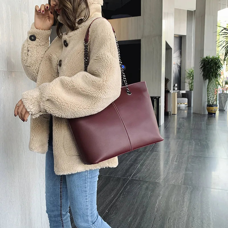 Casual Leather Shoulder Bag Chain Bucket Tote Large Capacity Shopper