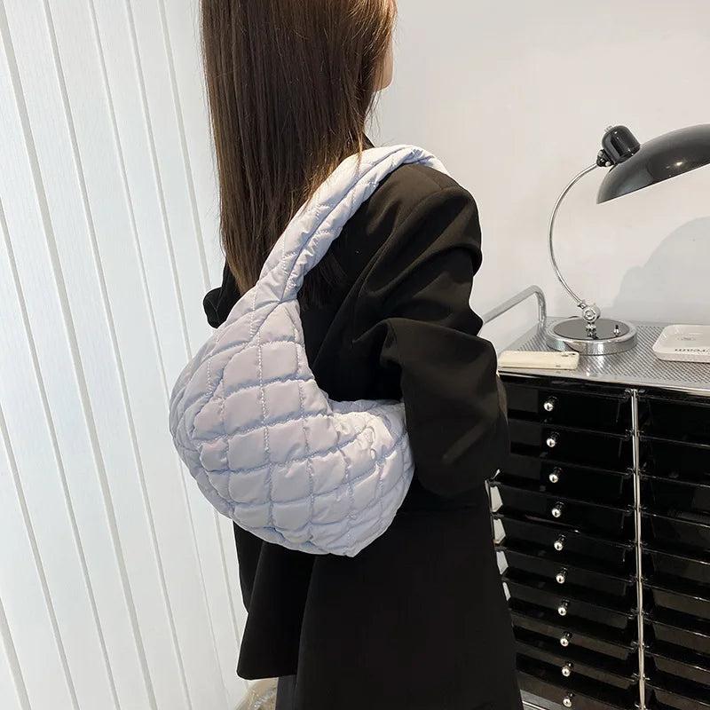 Casual Lingge Quilted Hobos Women Shoulder Bags Lightweight Nylon Small Tote Pur