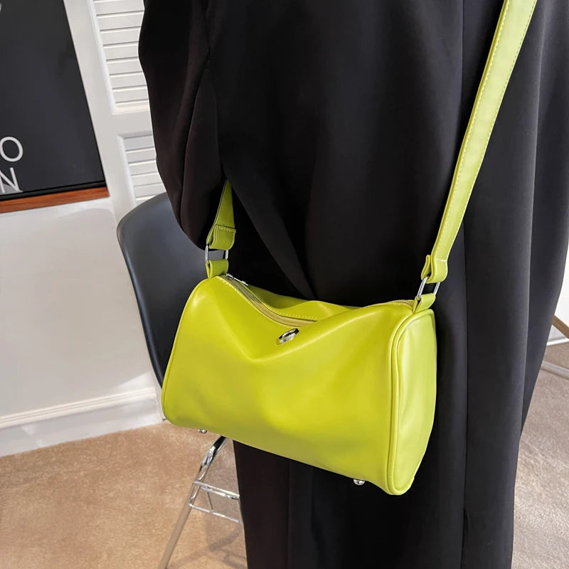 Casual PU Leather Women Shoulder Boston Bags High Ladies Solid Crossbody Bags