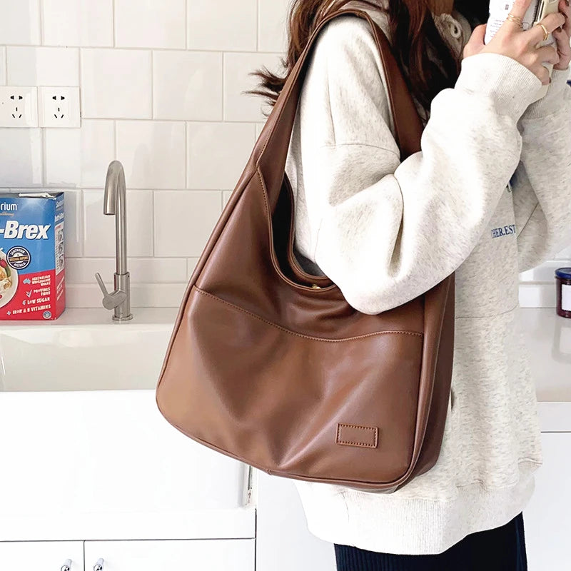 Casual Shoulder Bag Large Capacity PU Leather Wide Straps Tote Bag