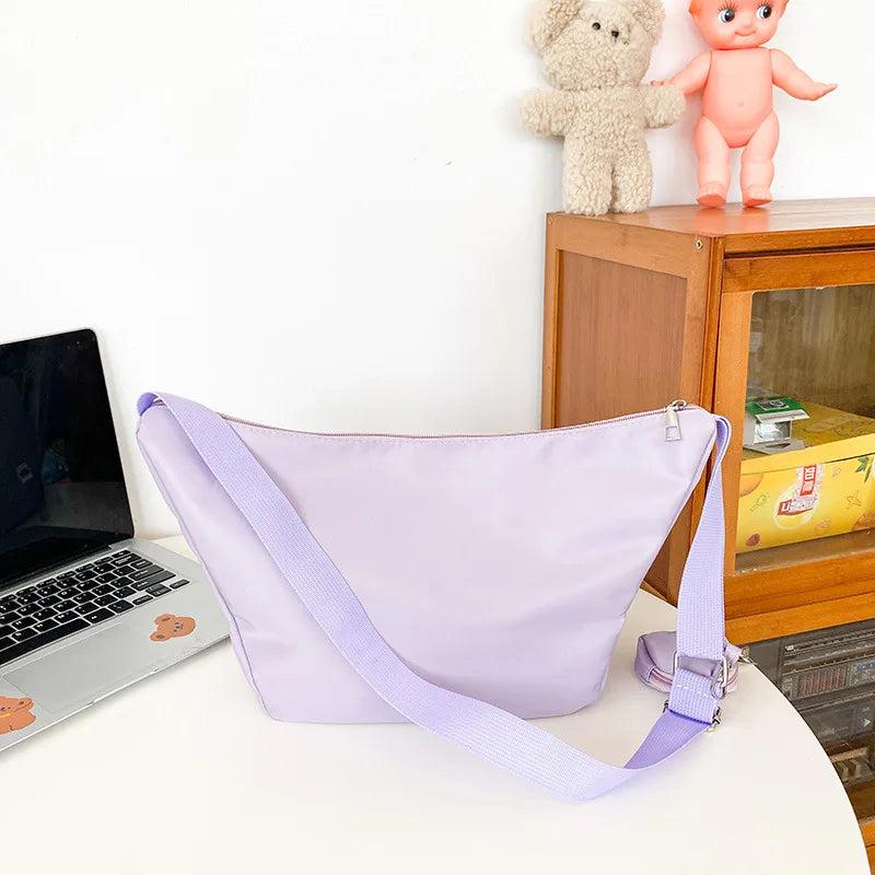This solid nylon handbag purse is perfect for daily use with its spacious design. The crossbody style adds convenience and style.