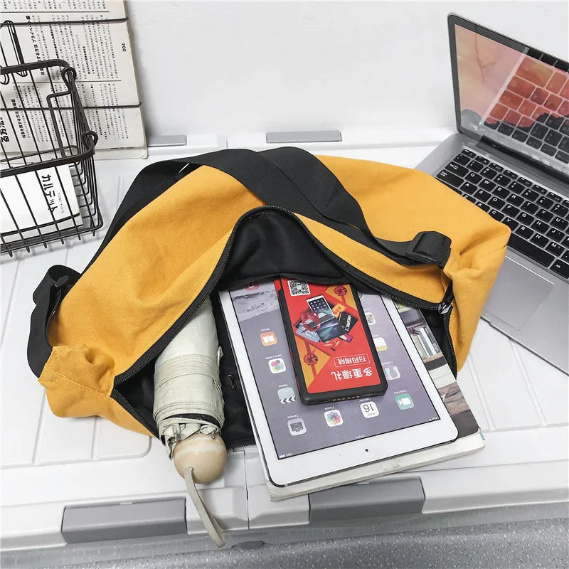 This classic messenger bag is made of washed canvas, perfect for everyday use. It features a casual shoulder design and solid color that complements any outfit.