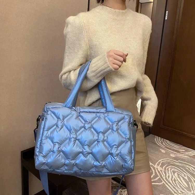 This women's handbag is made of high-quality nylon material with a down feather design, perfect for everyday use. It features a spacious interior to accommodate all your essentials.
