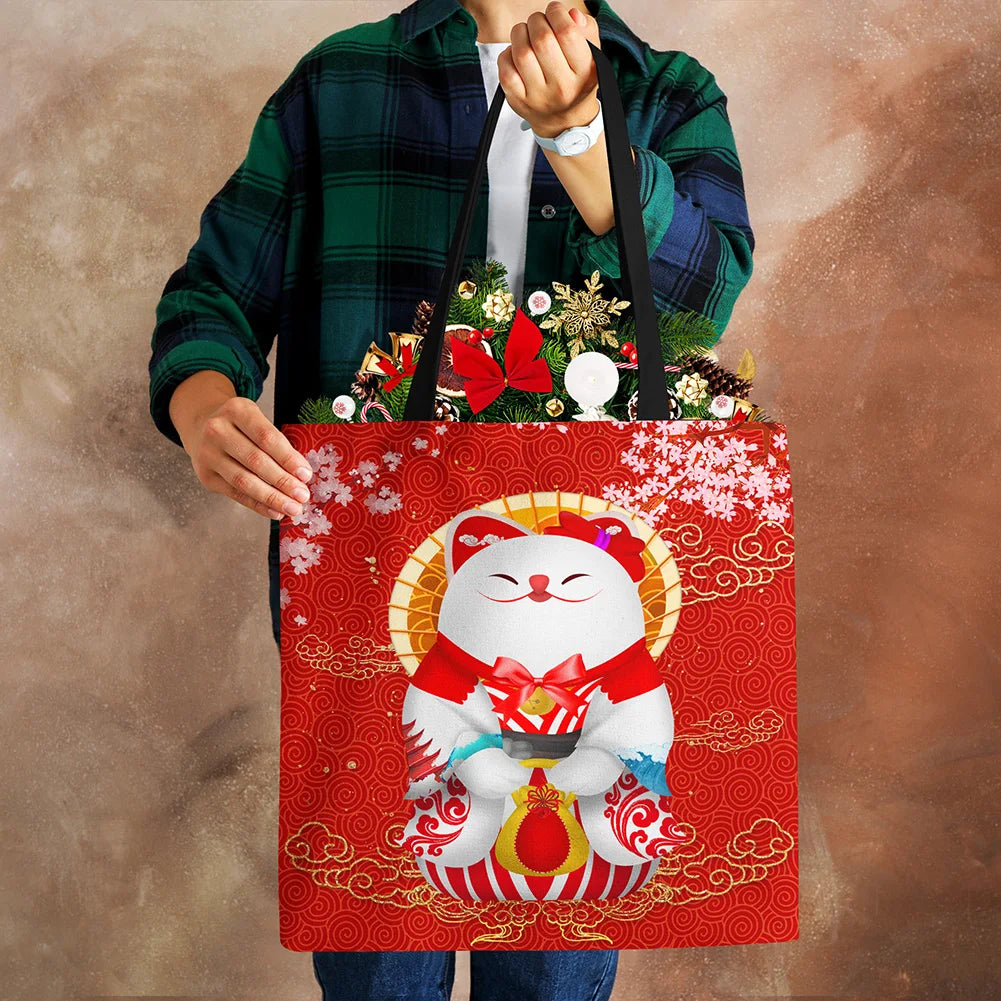 Cat Cartoon Shoulder Bag Japanese Shopping Reusable Canvas Tote Bag Women