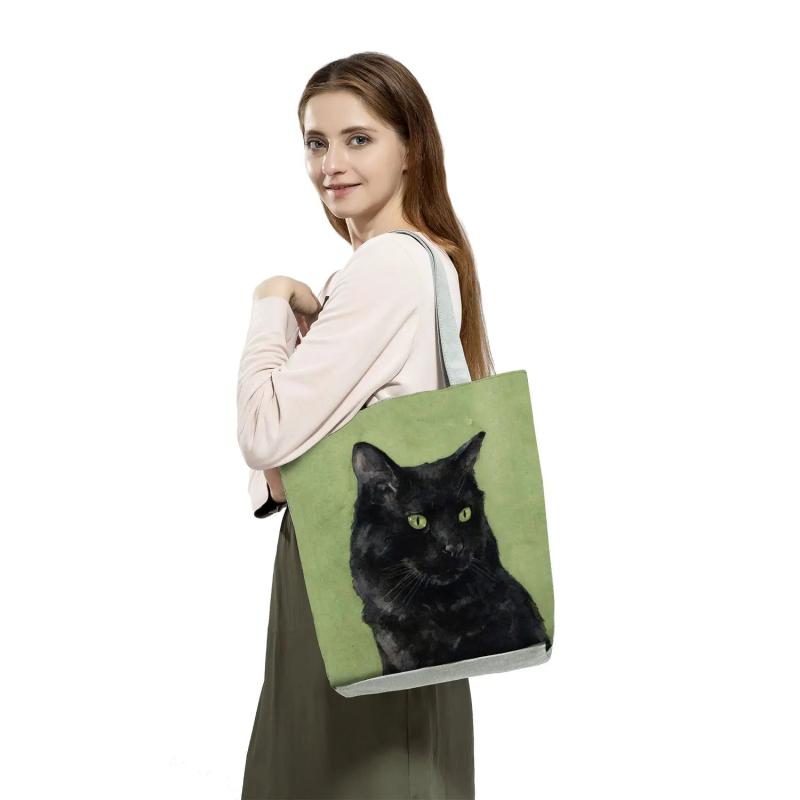 Get this eco-friendly large tote shopper bag with a unique cat print design. Perfect for shopping, outings, or as a stylish accessory.