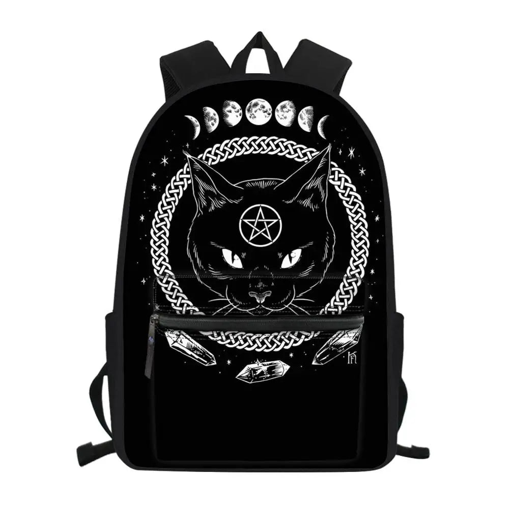 Cat Print Gothic Moon Teenager School Backpack Girls Women Travel Daypack