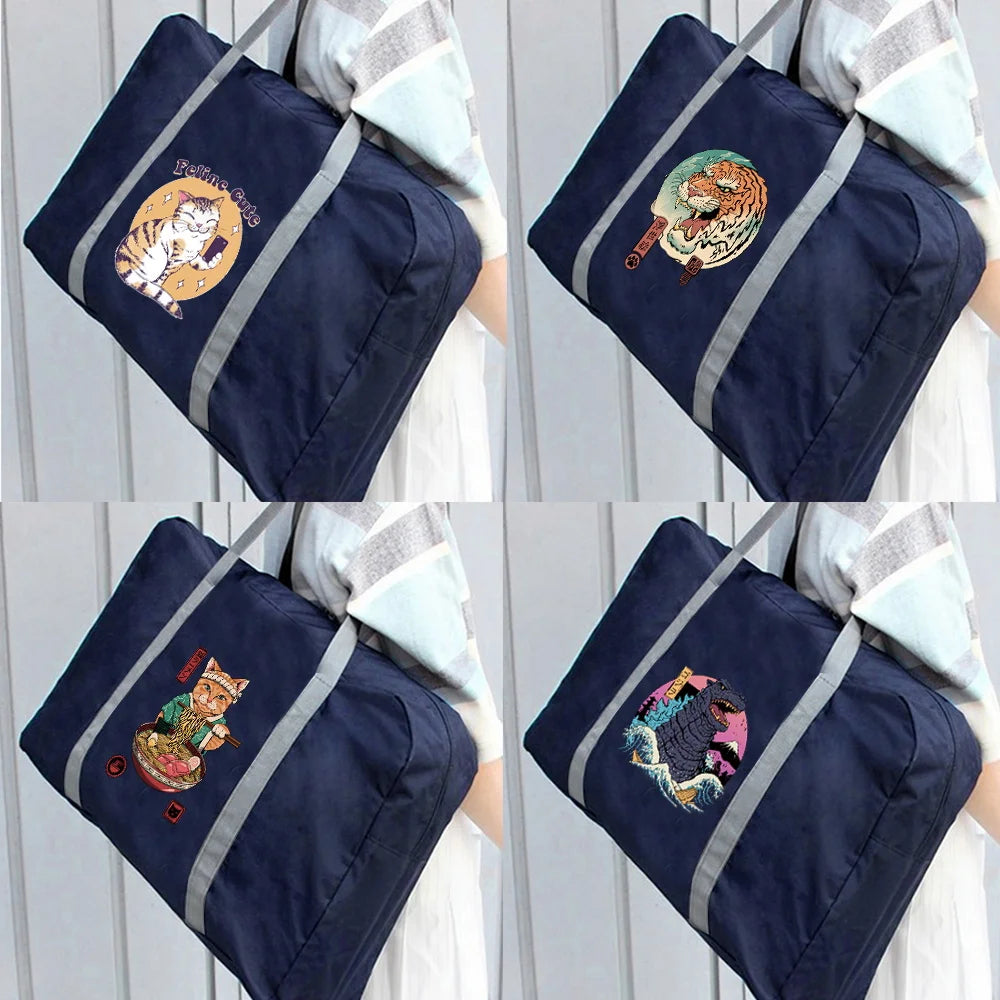 This foldable duffle bag is perfect for travel, grocery shopping, and organizing clothes. Featuring a cute Japan cat print, it's a stylish and practical choice for both men and women.