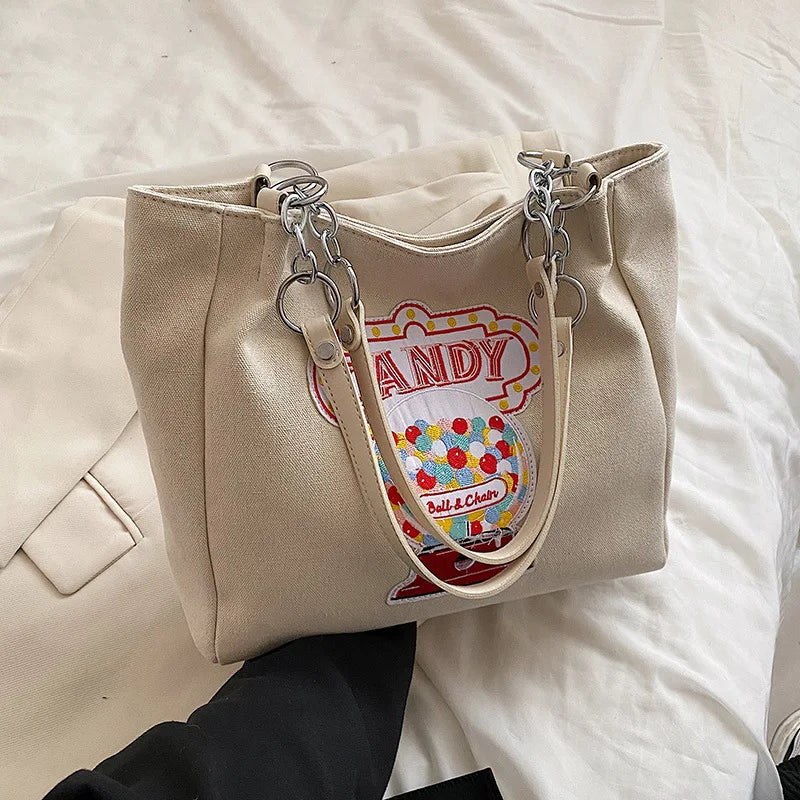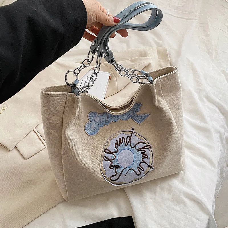 CGCBAG Women Canvas Shoulder Bag Embroidery Handbags Large Capacity