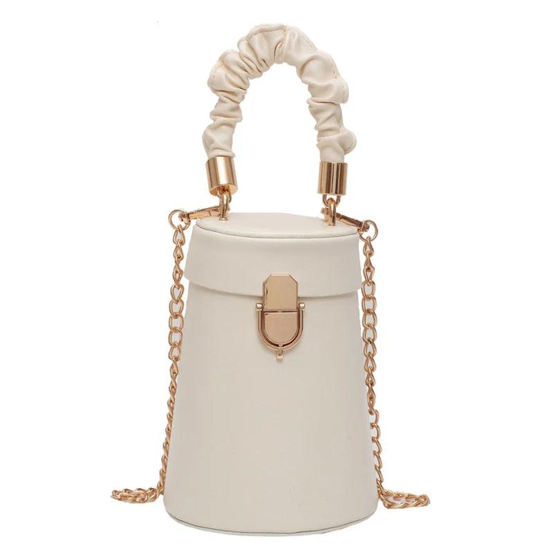 This stylish bucket bag is perfect for women on the go. Made from high-quality leather, it features a chain strap for a trendy look. It can easily hold your phone, wallet, and other essentials.