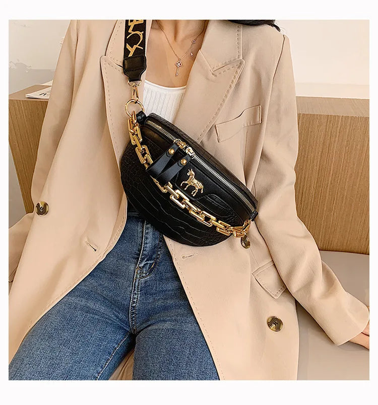 Chain Fanny pack Women Leather Waist Bag Mini Female Belt Bags