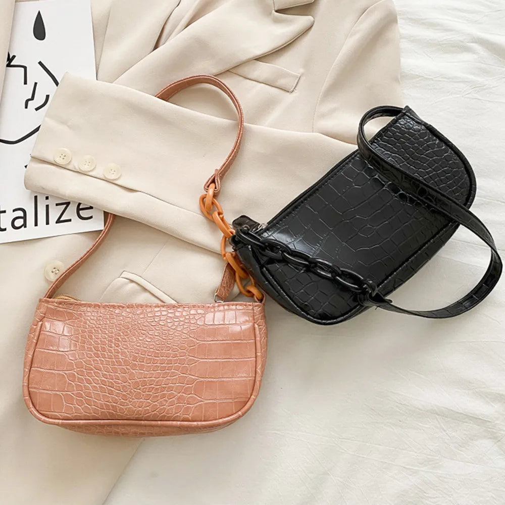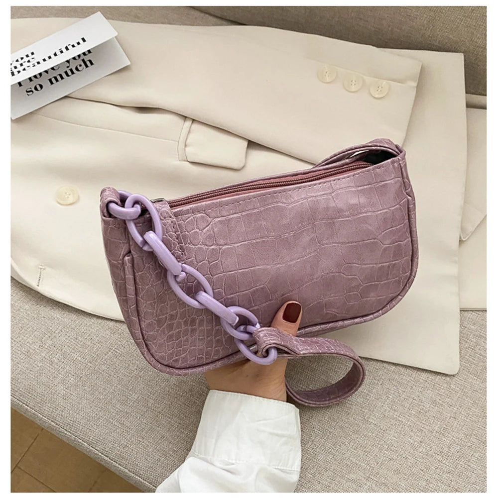 This retro handbag is perfect for casual outings, shopping, and everyday use. Made of high-quality leather, it features a stylish chain strap and a solid color design.