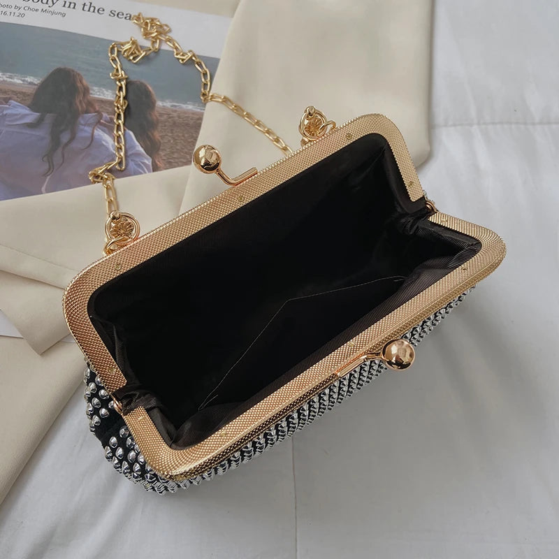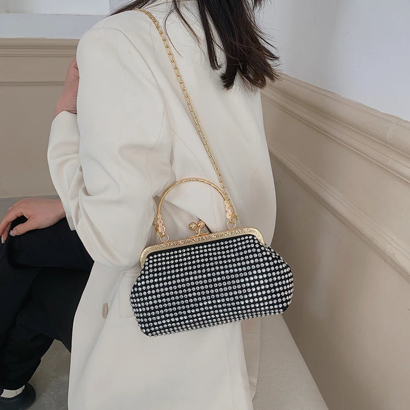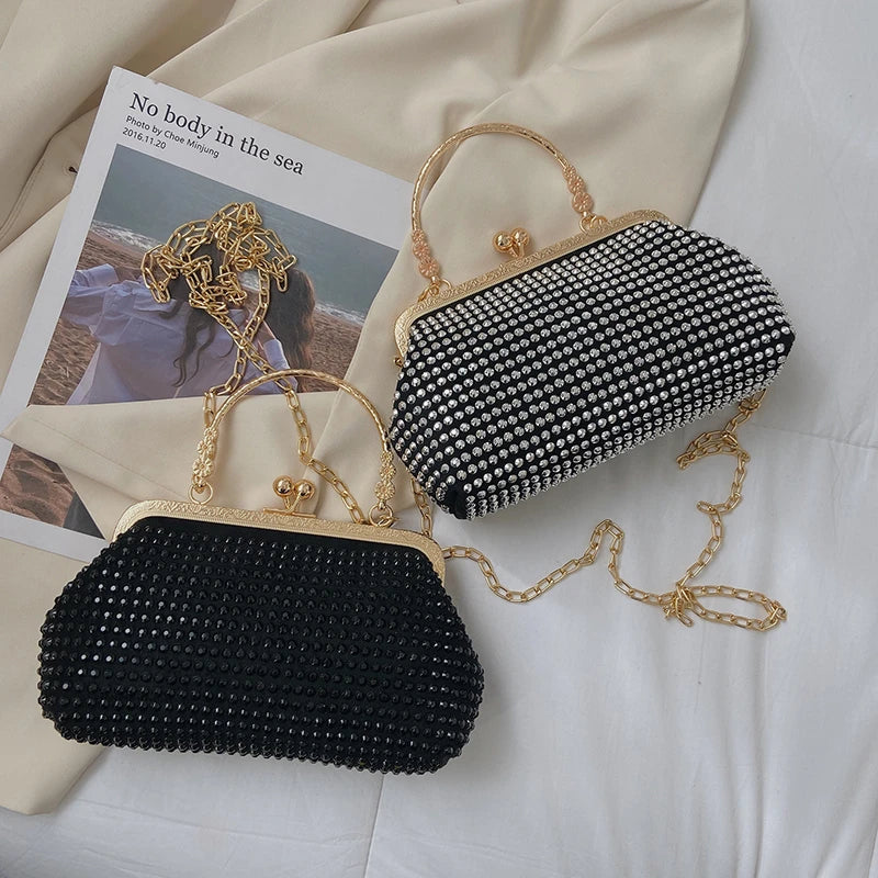 This stylish handbag is perfect for any evening outing. Crafted from high-quality PU material with rhinestone embellishments, it exudes elegance and charm.