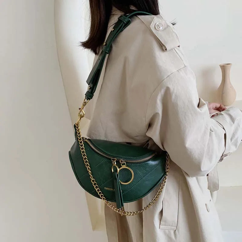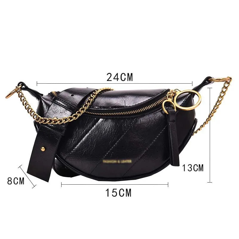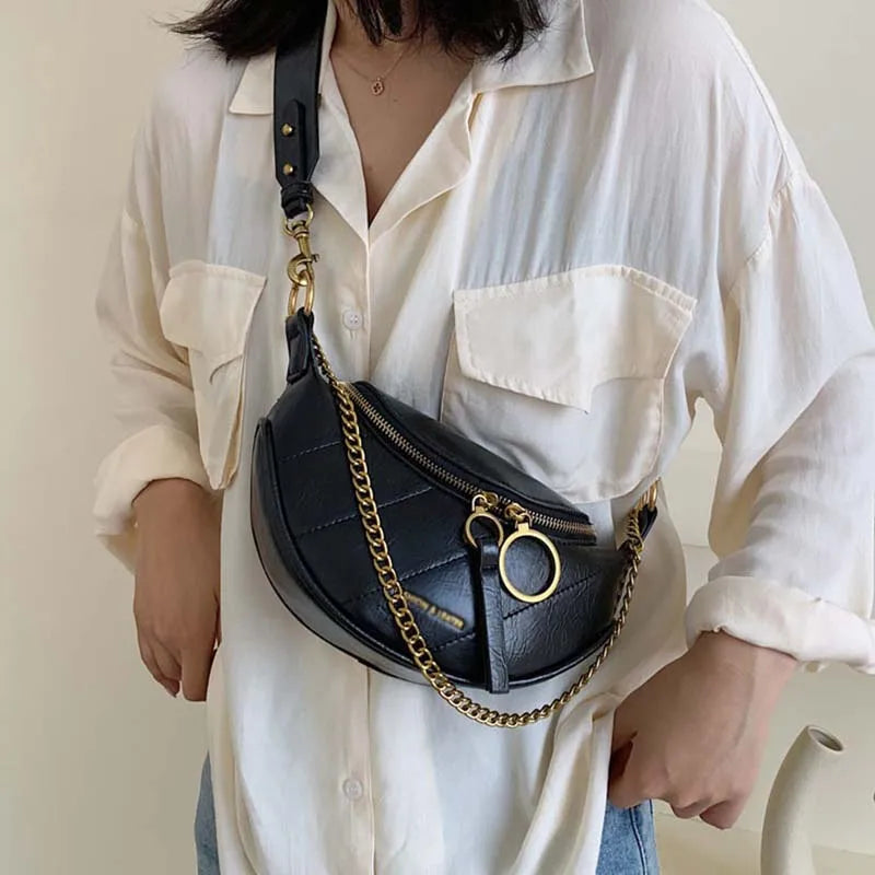 Chain Leather Fanny Pack Zipper Banana Bag Crossbody Bags