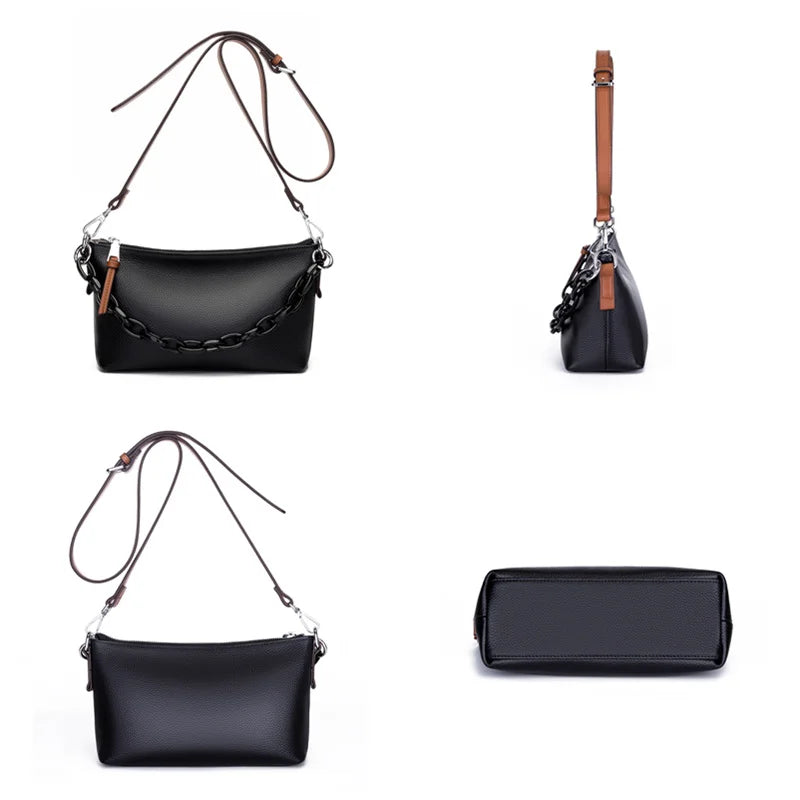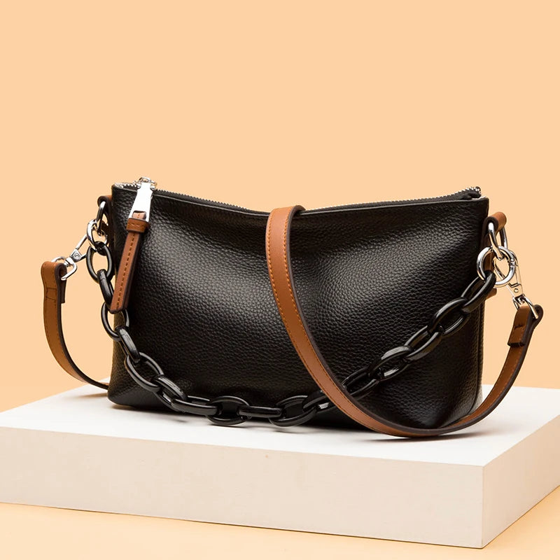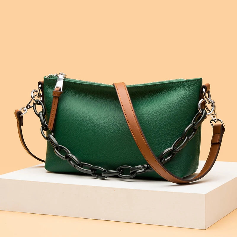 This stylish women's handbag is perfect for casual occasions. It features a chain design and genuine leather material, making it a fashionable choice for any outfit.