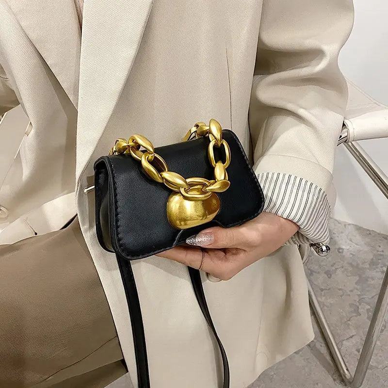 This mini lipstick bag is perfect for carrying your essentials in style. It features a chain strap and small size ideal for coins and cards.