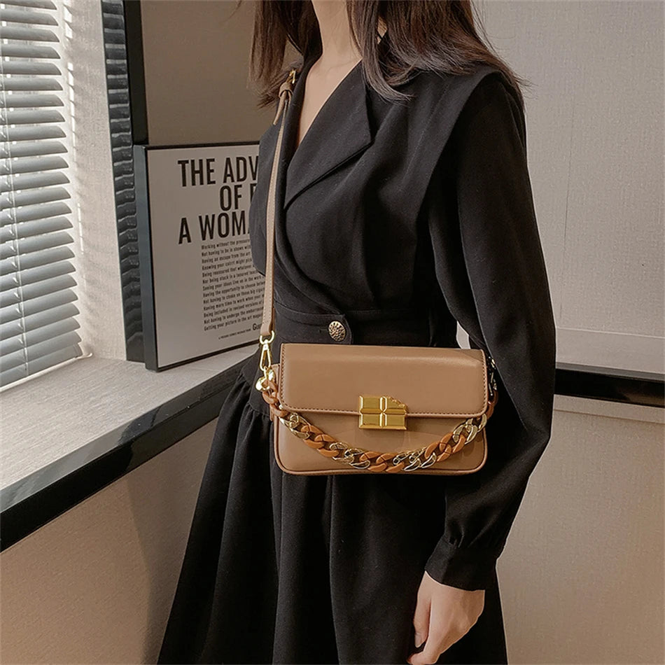 Elevate your style with this trendy crossbody bag featuring a chain side design. Perfect for spring, it adds a touch of elegance to any outfit.