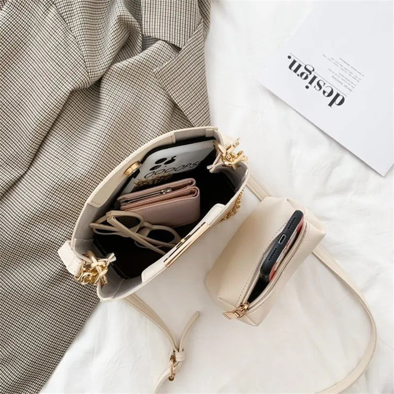 Elegant and practical 2-piece set includes a high-quality PU leather messenger bag and a stylish bucket bag. Perfect for everyday use or special occasions.