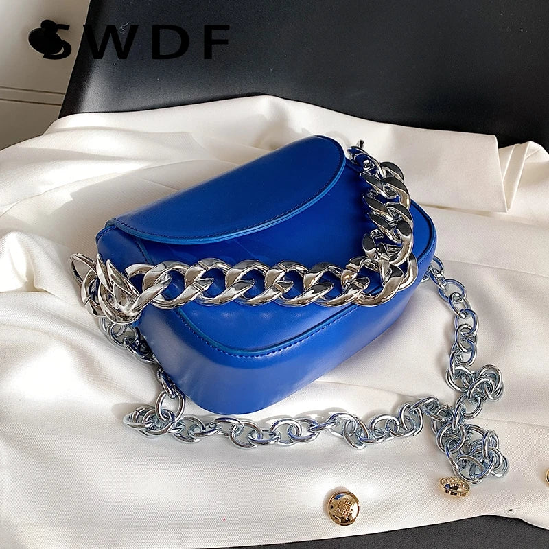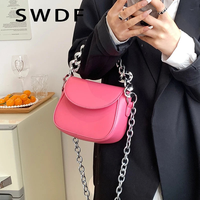 Stay stylish with this trendy crossbody bag made of high-quality PU leather featuring a thick chain strap.