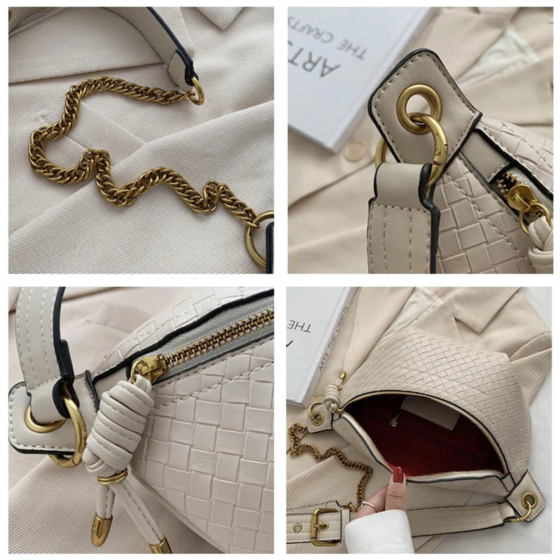 This stylish waist bag is made of high-quality leather and can be worn as a fanny pack or crossbody chest pack. It features a chain detail and is perfect for carrying your essentials on the go.