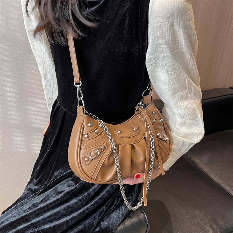 This women's shoulder bag is made of high-quality PU leather, perfect for everyday use. It features a chain design and can be worn as a crossbody bag or a handbag.