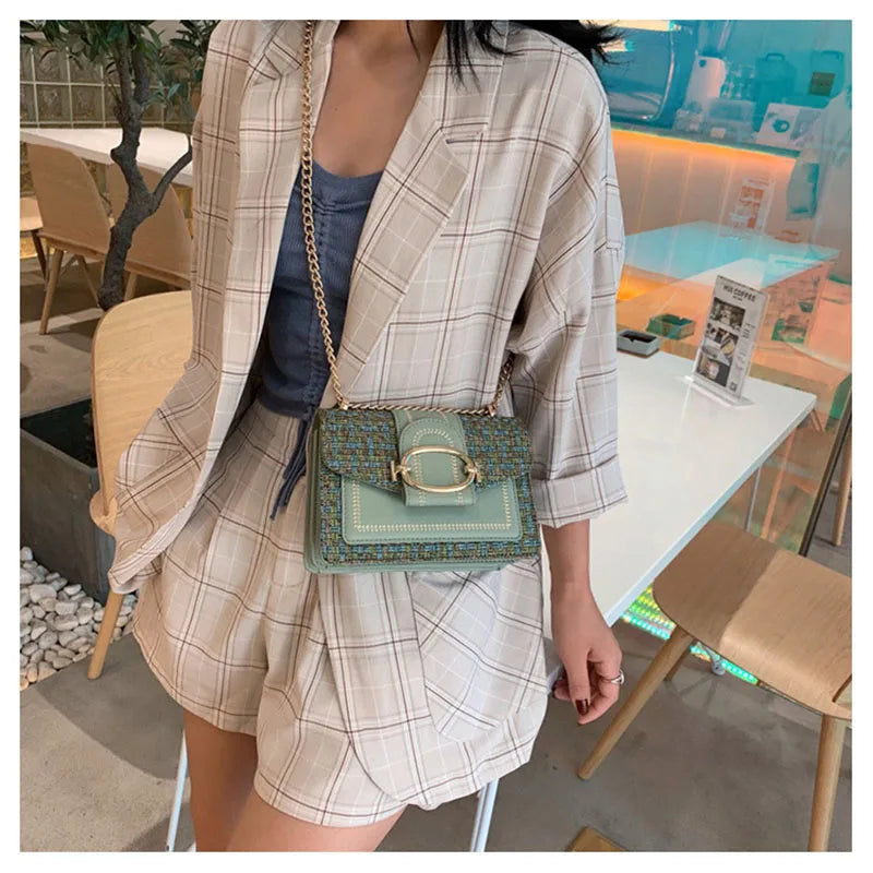 Chain Women's Bags Large Capacity Sewing Thread Splicing Retro Female Bag