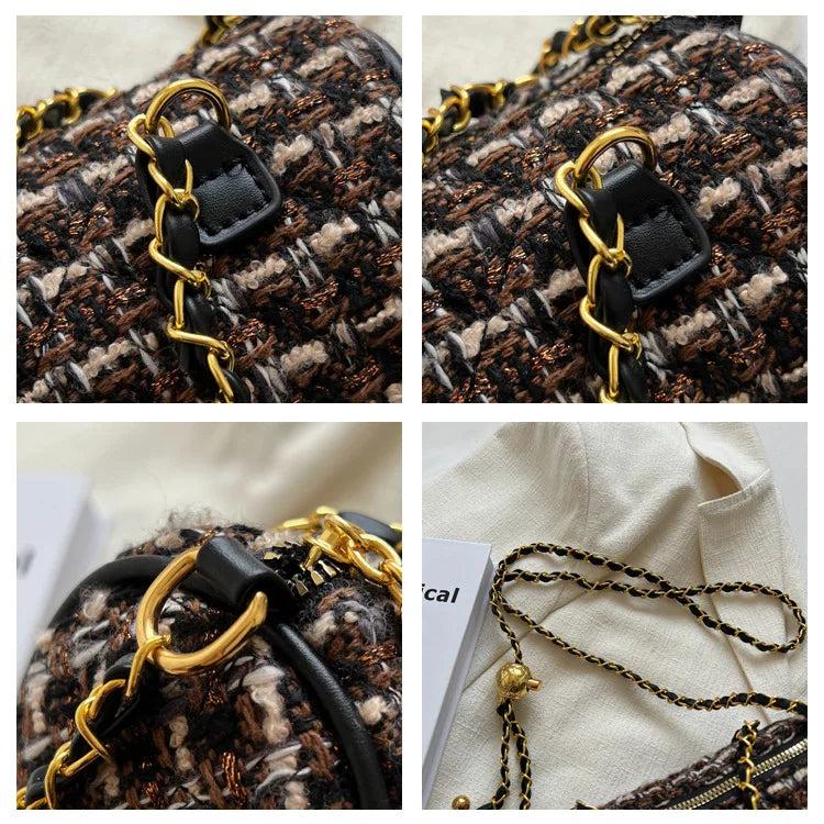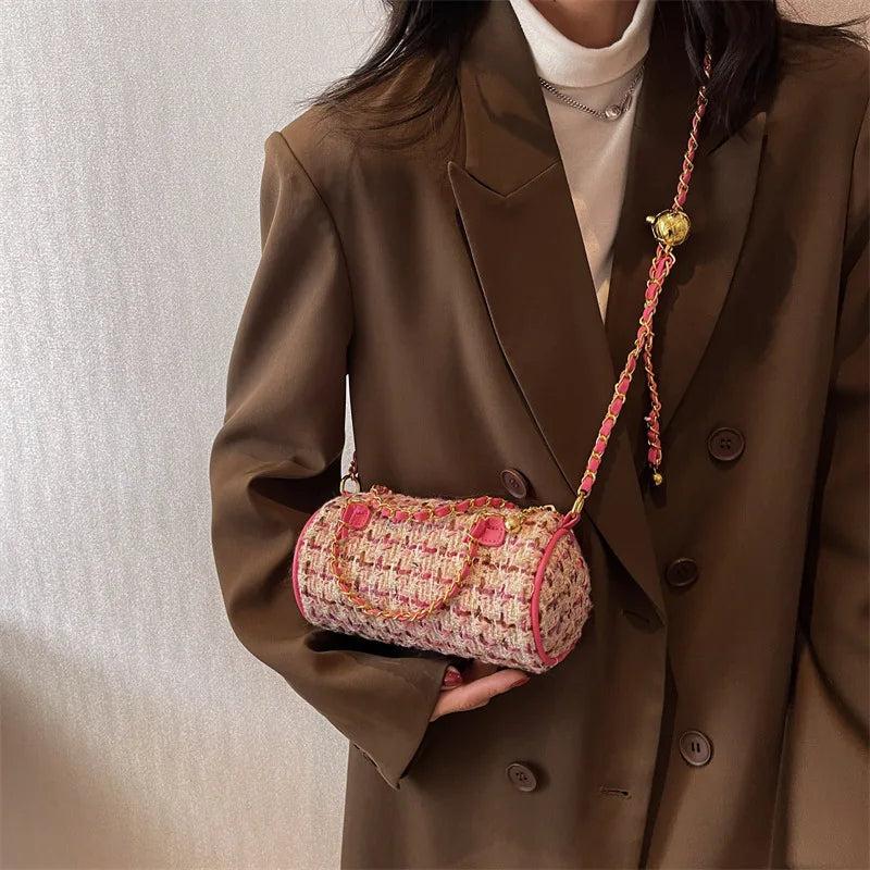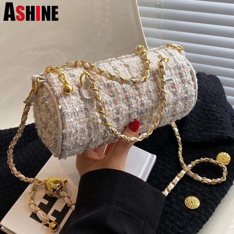 Chains Shoulder Purses Barrel-Shaped Women Hand Bags Quilted Purses