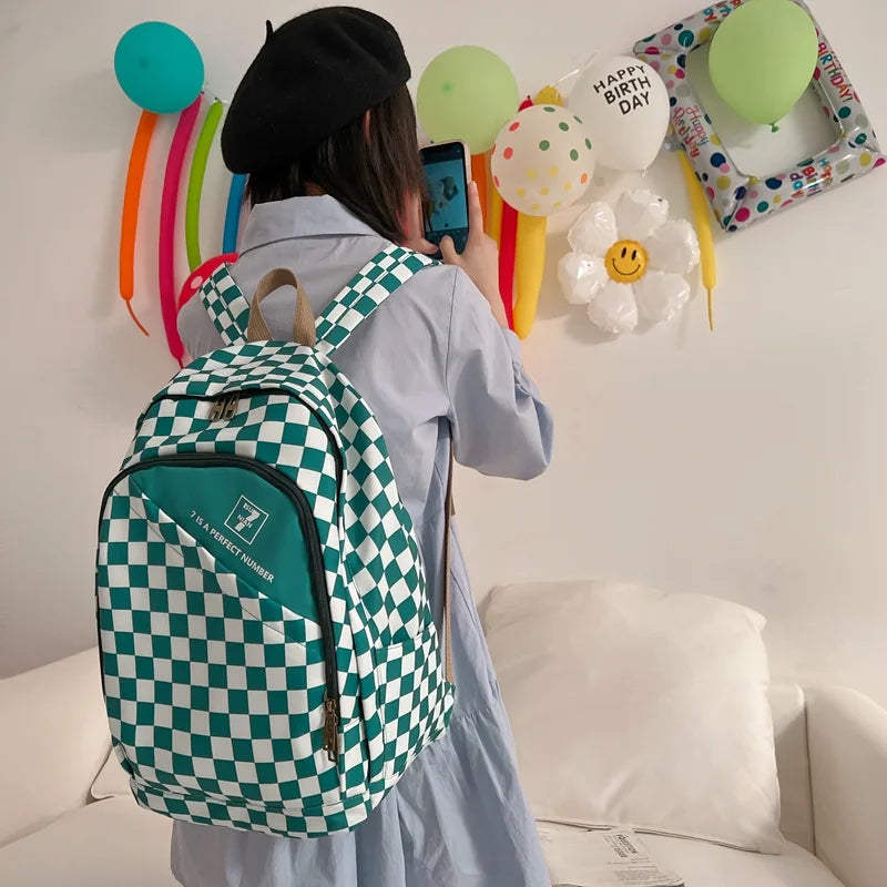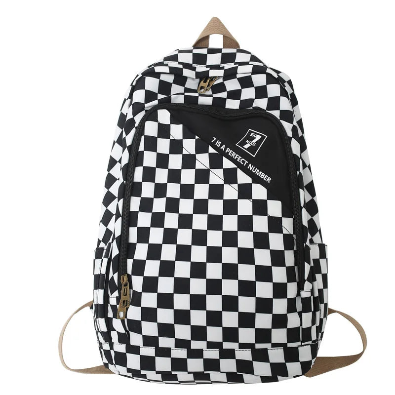 This stylish checkerboard backpack is perfect for students and travelers. It features a unisex design suitable for both men and women and can also be used as a college knapsack or laptop bag.
