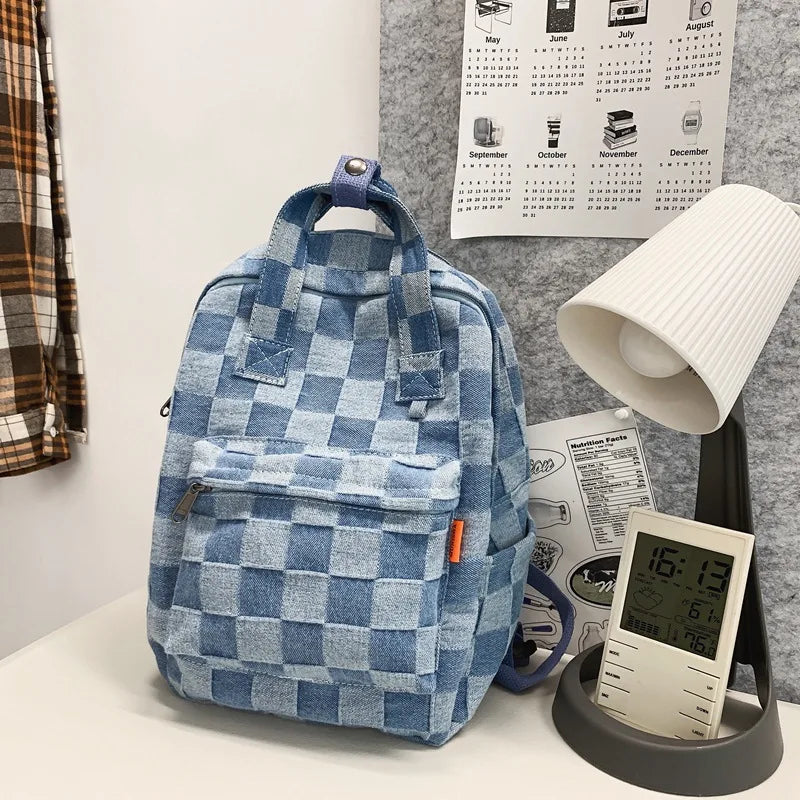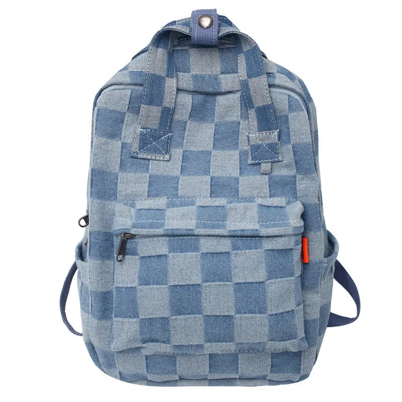 Checkerboard Canvas Bag College Backpack Male Female Travel Laptop Student Bags