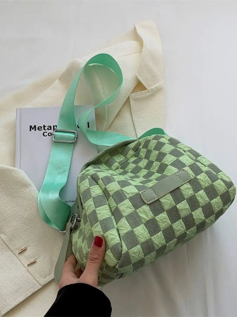 Stay stylish and organized with this casual checkerboard canvas bag, perfect for summer outings. The shoulder strap makes it easy to carry all your essentials.