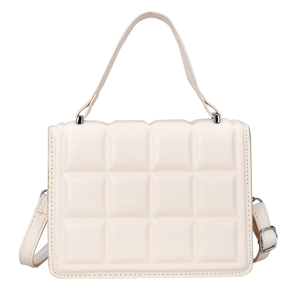 This stylish crossbody bag features checkered printing and a solid design. Made of PU leather, it offers durability and a chic look.