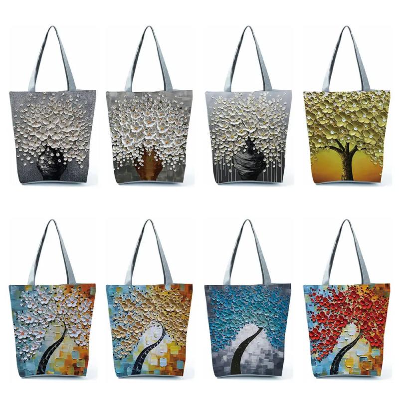 Cherry Blossom Oil Paint Tote Bag For Women Lady Handbags