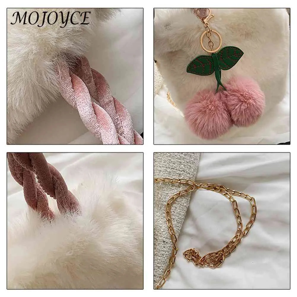 Cherry Bucket Bag Plush Women Handbags Chain Casual Portable Soft Warm