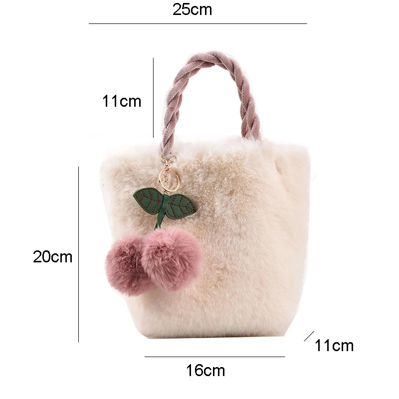 Cherry Fur Shoulder Bags Plush Tote Bag Soft Furry Handbag Chains for Women